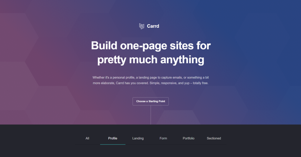 Captura de tela do site oficial da Carrd.