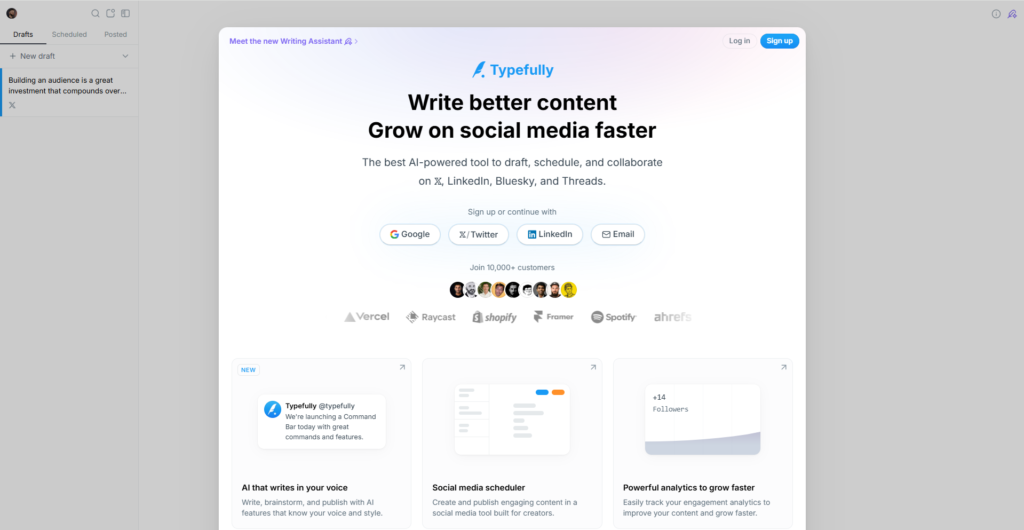 Captura de tela do site oficial da Typefully.