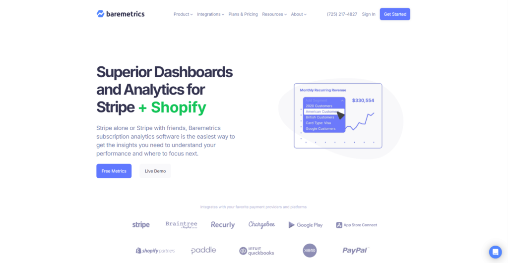 Captura de tela do site oficial da Baremetrics.